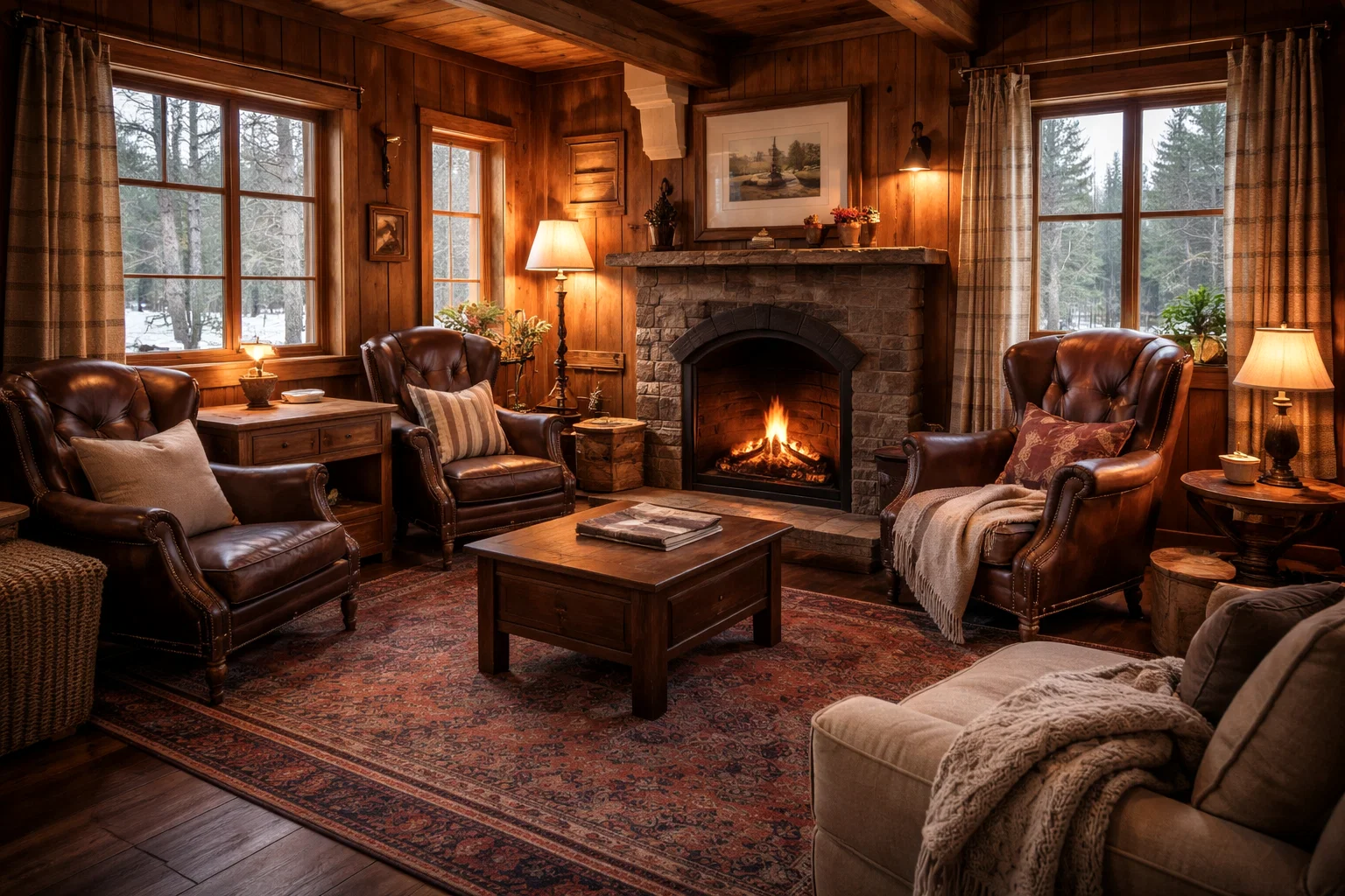 - Textural Textiles: Layering is key for coziness. Incorporate chunky knit wool throws, faux sheepskin rugs, cable-knit pillows, and durable fabrics like canvas, burlap, and plaid flannel. These add softness and visual weight.