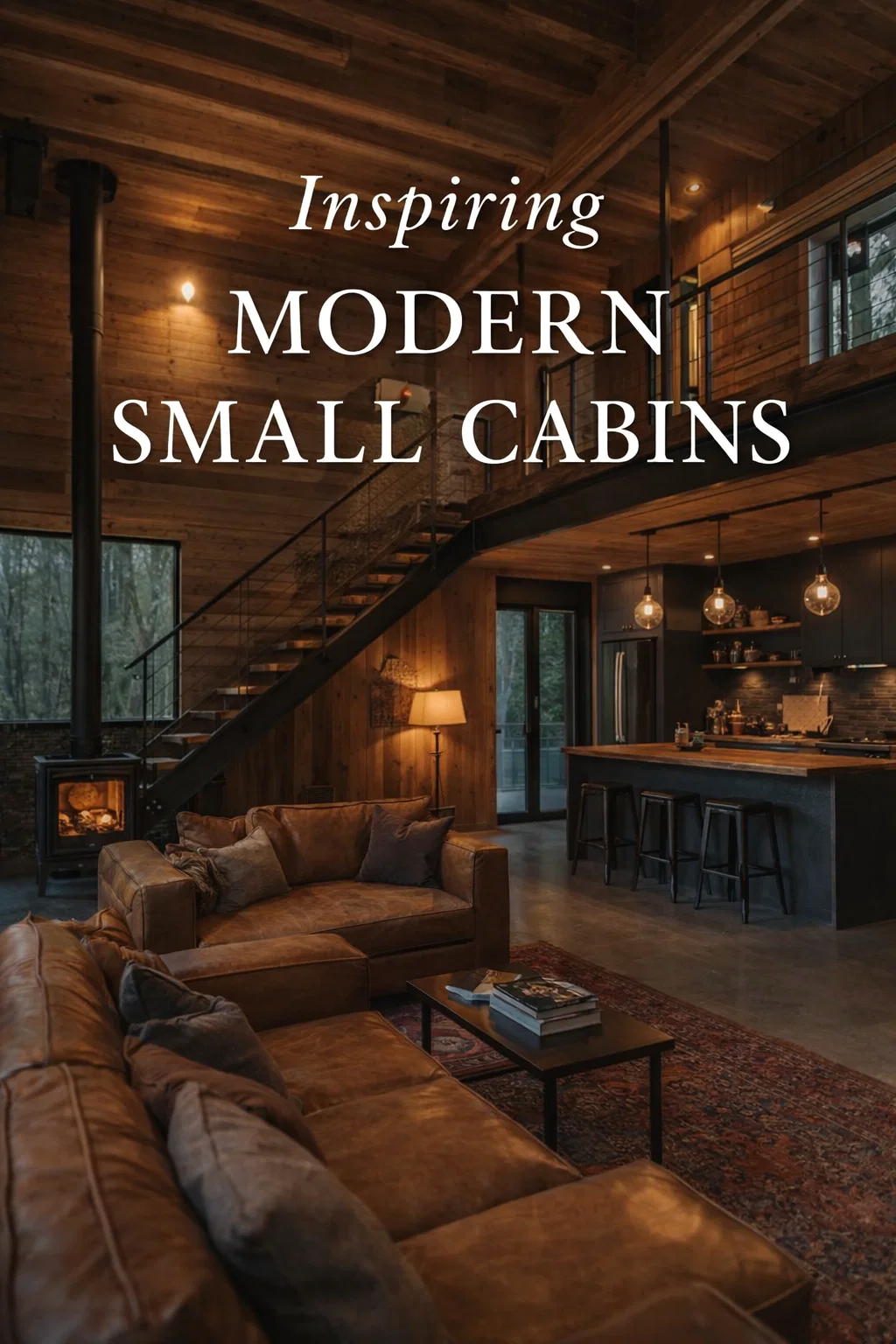 Even in a small cabin, the kitchen should be a masterpiece of design and functionality. The modern sophisticated kitchen often features a dark aesthetic that blends seamlessly into the rest of the living space. This is not the place for white shaker cabinets; instead, think matte black, dark oak, or even metal finishes.