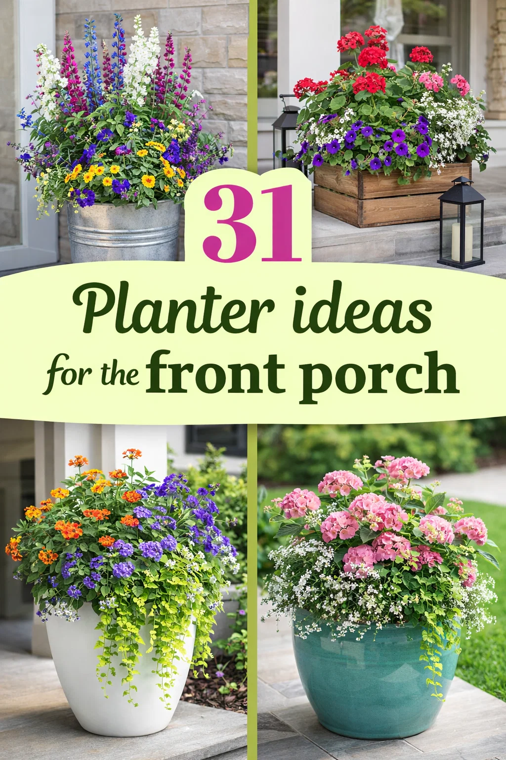 In this guide, we are not just giving you advice, we are handing you 31 complete, beautifully curated planter ideas designed specifically to elevate your front porch throughout the spring and summer seasons. The attached image offers a glimpse into the diverse styles we will cover, from a textured, rope-wrapped metal bucket brimming with vibrant red geraniums to sophisticated dark pottery showcasing sophisticated, contrasting foliage. This list is about finding the exact inspiration you need to get your hands in the dirt and create the inviting sanctuary you deserve.