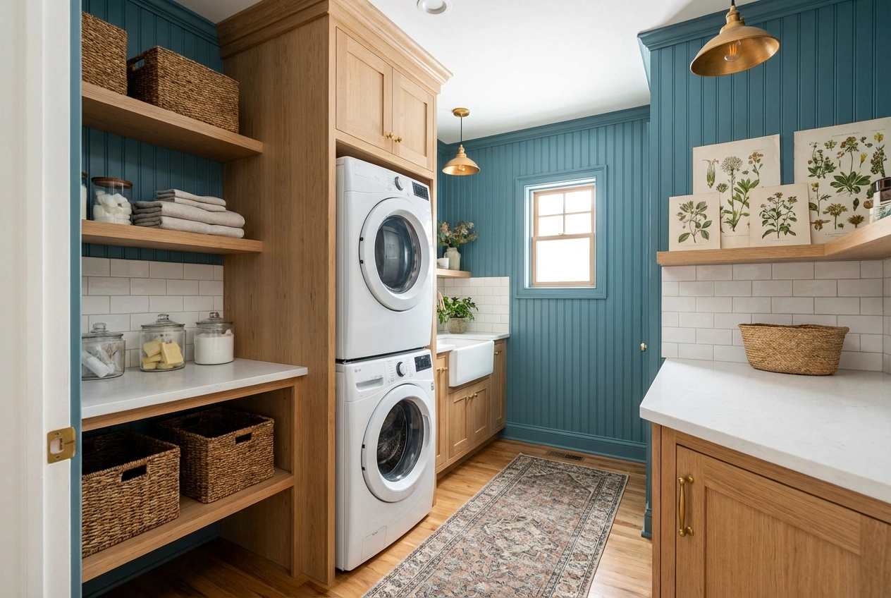 - Textiles & Accessories: A stylish, washable rug adds comfort and color. Use matching containers for detergents, a small piece of art, or a hardy plant like a snake plant to bring life into the space.