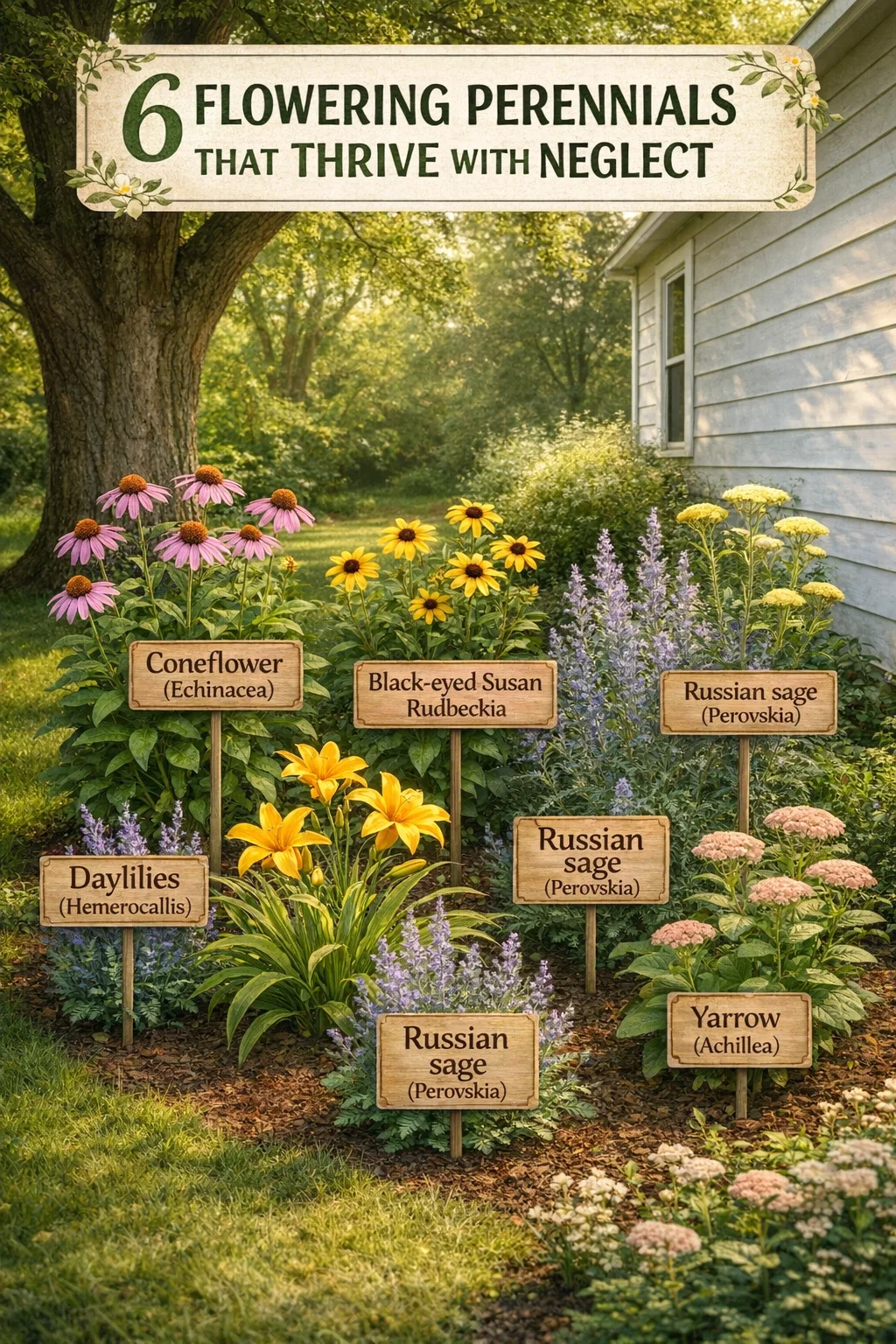 The image we are looking at today highlights a perfect “cheat sheet” for the effortless gardener. It features six power players of the plant world: Coneflower, Black-eyed Susan, Russian Sage, Daylilies, and Yarrow. These species are the backbone of a successful low maintenance garden. They are celebrated by landscapers and hobbyists alike for their ability to withstand heat, resist pests, and, most importantly, thrive even when you occasionally forget they exist. Let us dive deep into how you can use these specific varieties to transform your front flower beds into a perennial paradise.