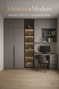 Welcome to a masterclass in modern functionality. This stunning built-in cabinetry system, blending a comprehensive wardrobe, an integrated desk, and…