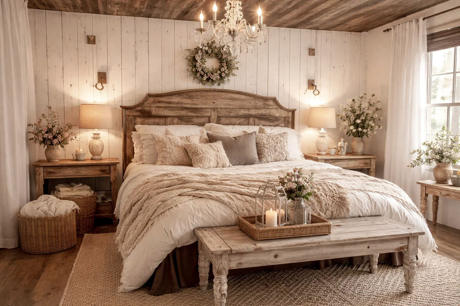- Seasonal Refreshes: You can easily update the room with the seasons. In summer, switch to lighter linen quilts and add seashells or brighter floral accents. In winter, layer in a heavier knit blanket, more candles, and deeper, richer-colored pillows like burgundy or forest green.
