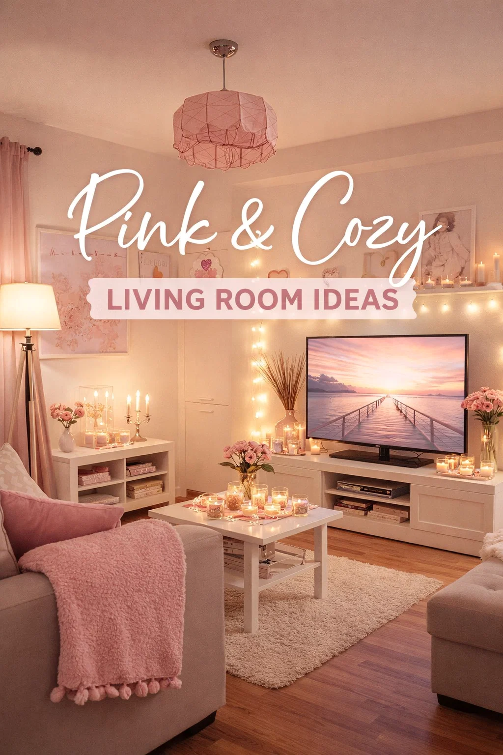 Stepping into a room that feels like a warm hug is one of life’s greatest simple pleasures. There is a specific magic that happens when soft lighting meets a thoughtful color palette, transforming a standard living area into a sanctuary of peace and style. The image we are exploring today captures this essence perfectly, showcasing a living room that balances modern functionality with a romantic, aesthetic charm. It is a masterclass in how to use pink tones, ambient lighting, and textures to create a space that feels both high end and incredibly lived in.