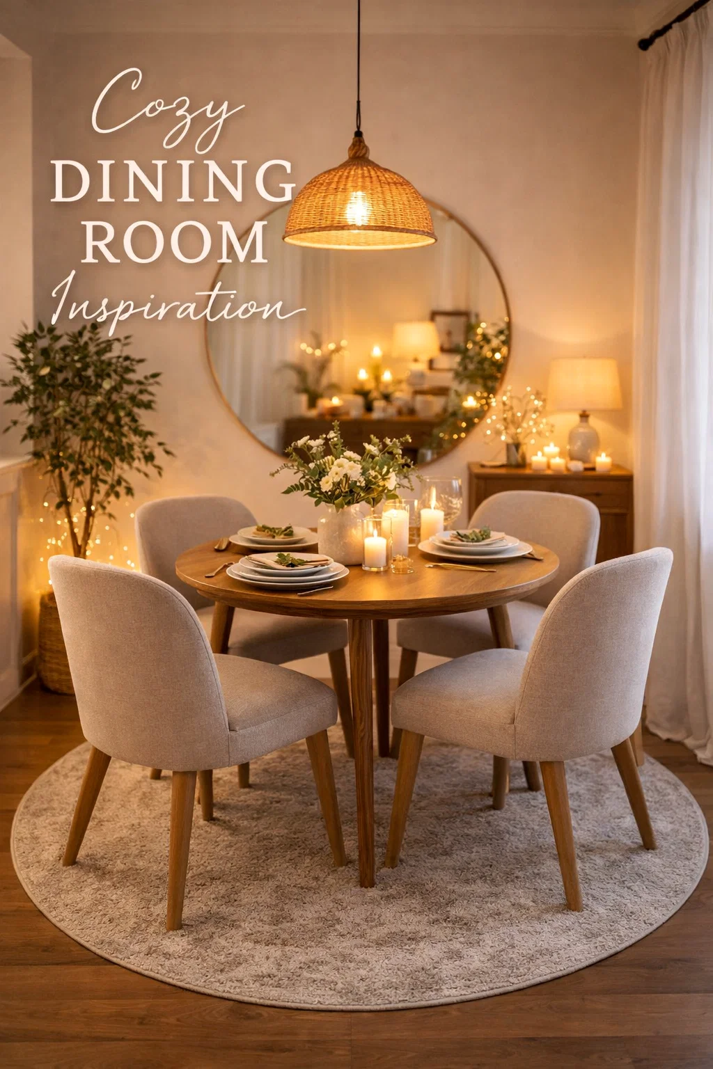 - The Statement Pendant: A woven or rattan pendant light hanging directly over the center of the table provides a beautiful focal point. The organic texture of the weave adds a “boho-chic” element that softens the look of hard wooden furniture.