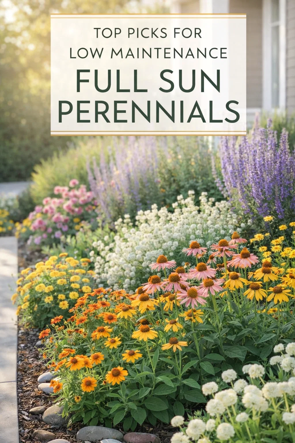 Creating a breathtaking front yard does not have to mean spending every weekend with a trowel in your hand and a hose in your reach. For many homeowners, the dream is a lush, vibrant garden that practically takes care of itself while bathing in the glorious afternoon sun. The image we are looking at perfectly captures this balance, showcasing a dense, colorful border of full sun perennials that offer maximum visual impact with minimal intervention. From the iconic pink petals of echinacea to the architectural spikes of lavender, this style of landscaping turns a simple walkway into a welcoming floral journey. In this guide, we will dive deep into how you can replicate this professional look using hardy plants that love the heat and return year after year.