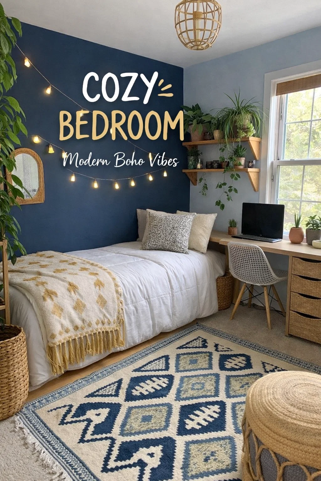 This room is a masterclass in how to use color and texture to overcome the limitations of a small floor plan. It proves that you do not need a massive budget or a huge amount of space to create a room that feels luxurious and personal. By starting with a strong color foundation, layering in natural materials, and being mindful of how you use every square inch of space, you can turn a basic room into a curated sanctuary. Whether you are moving into a new dorm or simply refreshing your current bedroom, remember that the best designs are those that balance style with comfort. Take inspiration from the mix of navy and boho elements to create a space that you truly love coming home to at the end of the day.