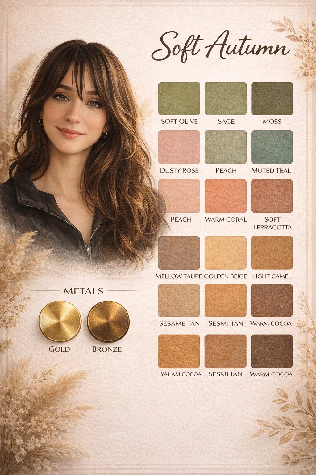 Soft Autumn Color Palette Muted Warm Earth Tones Gold Metals Guide