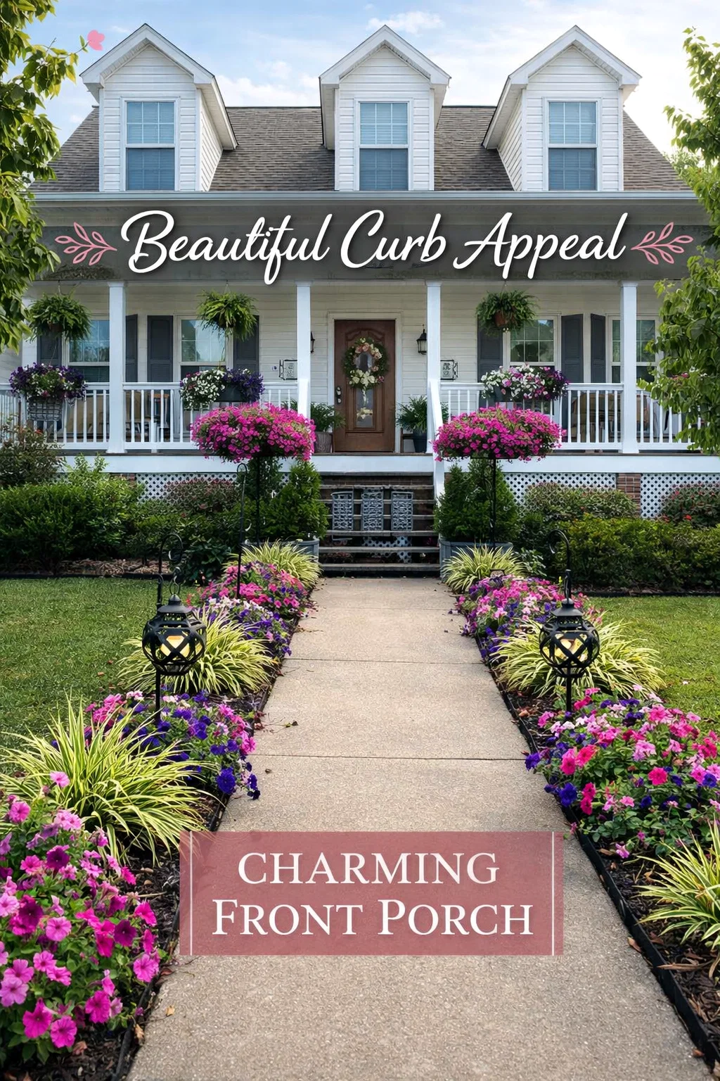 Stunning Front Porch Landscaping Ideas with Vibrant Flowers and Walkway Decor