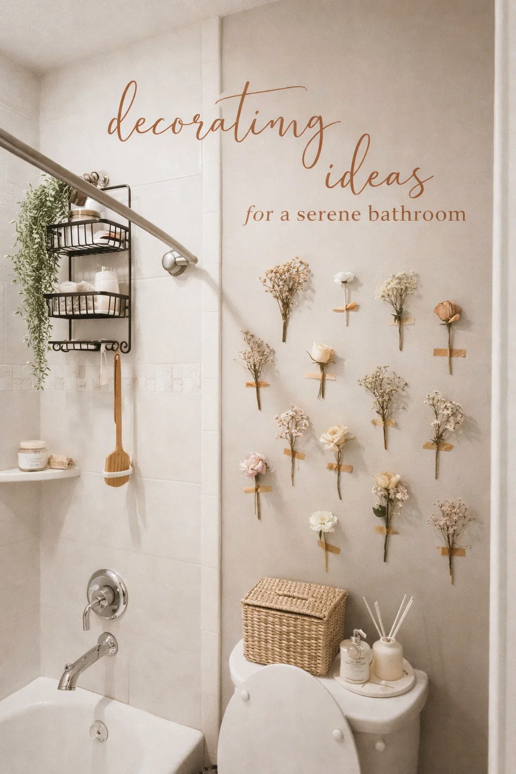 Boho Bathroom Decor Idea DIY Pressed Flower Wall Art Aesthetic Small Bathroom Inspo