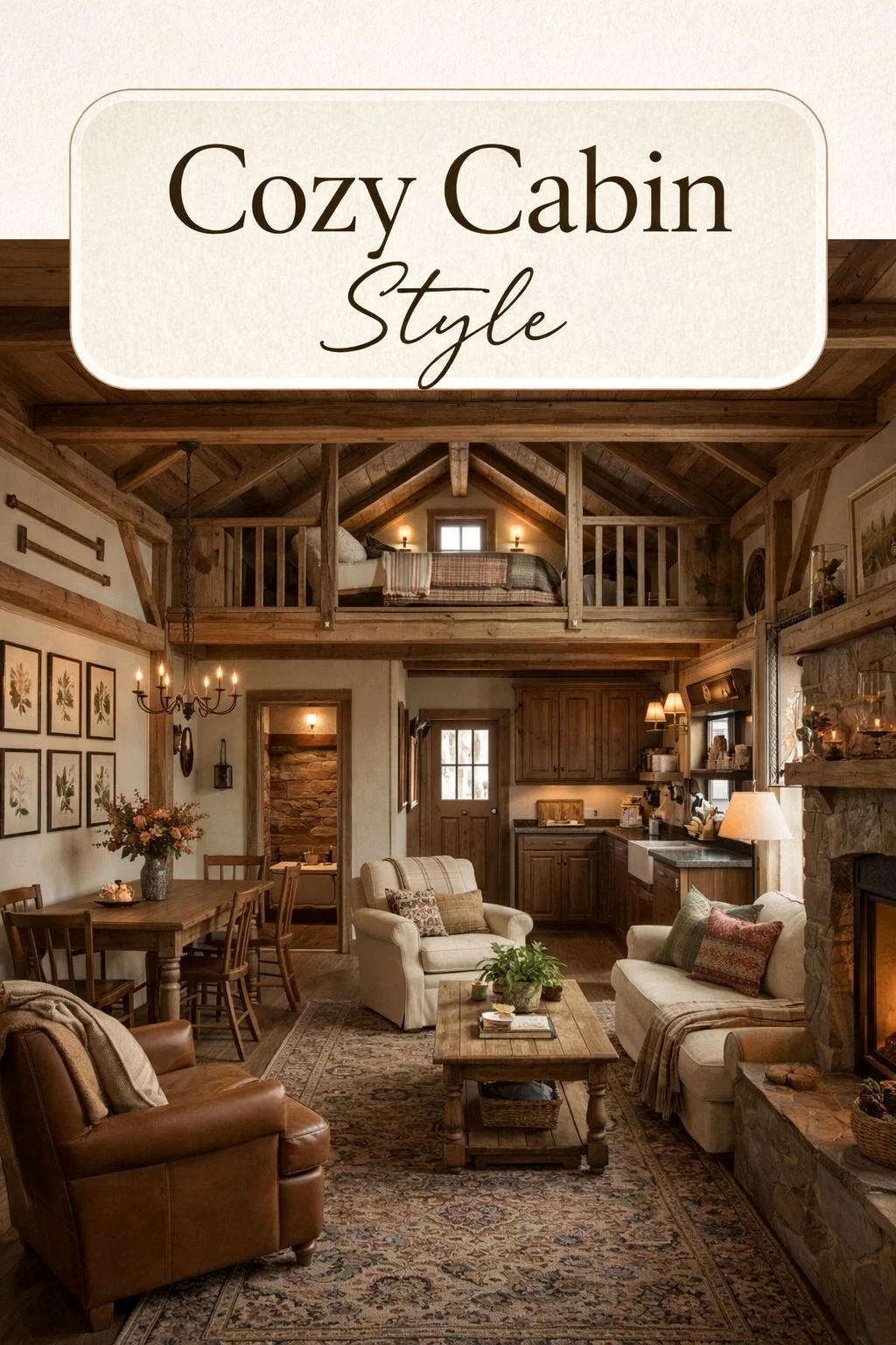 Cozy Rustic Tiny Home Interior Design Warm Cabin Loft with Wood Beams and Stone Accents