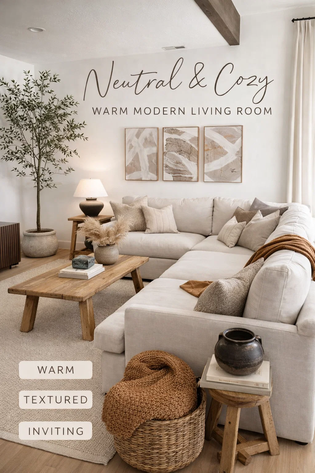 Modern Organic Living Room Ideas Neutral Sectional Decor Warm Minimalist Aesthetic