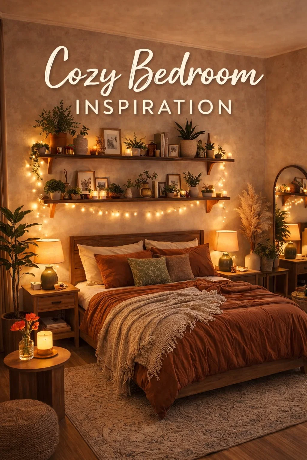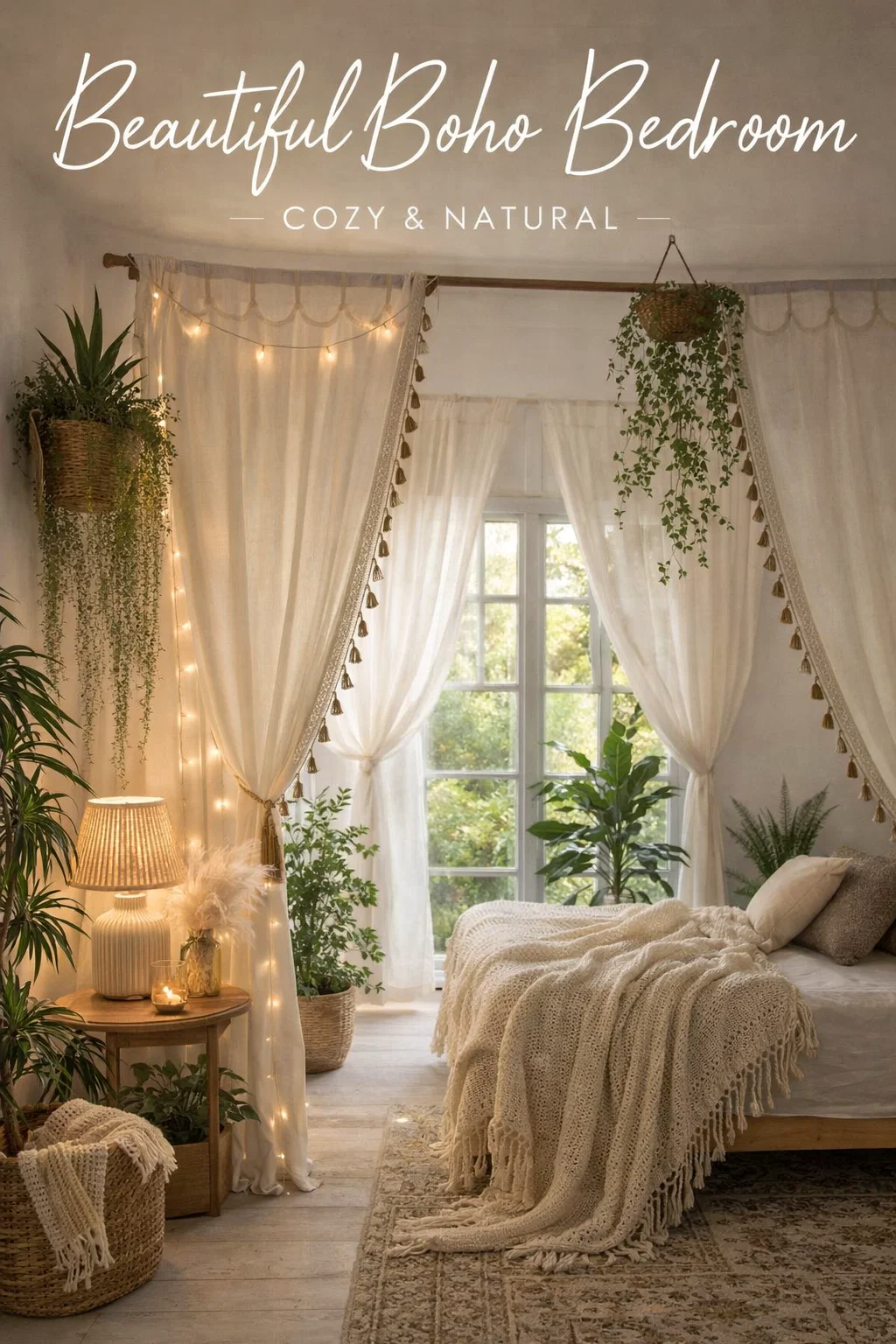 Dreamy Boho Bedroom Decor Ideas with Indoor Plants and Fairy Lights