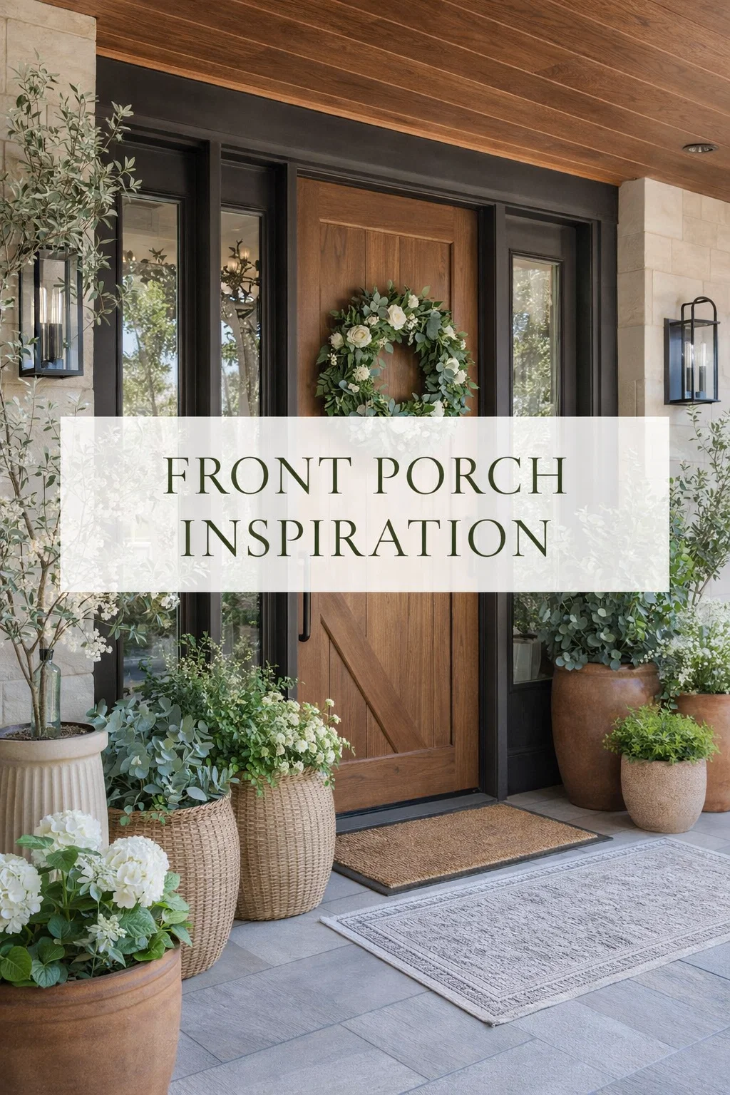 Modern Front Porch Styling Ideas Large Woven Baskets and Floral Planters