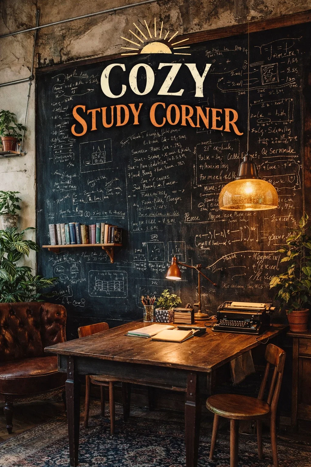 Dark Academia Office Inspiration Moody Workspace with Chalkboard Wall Vintage Decor