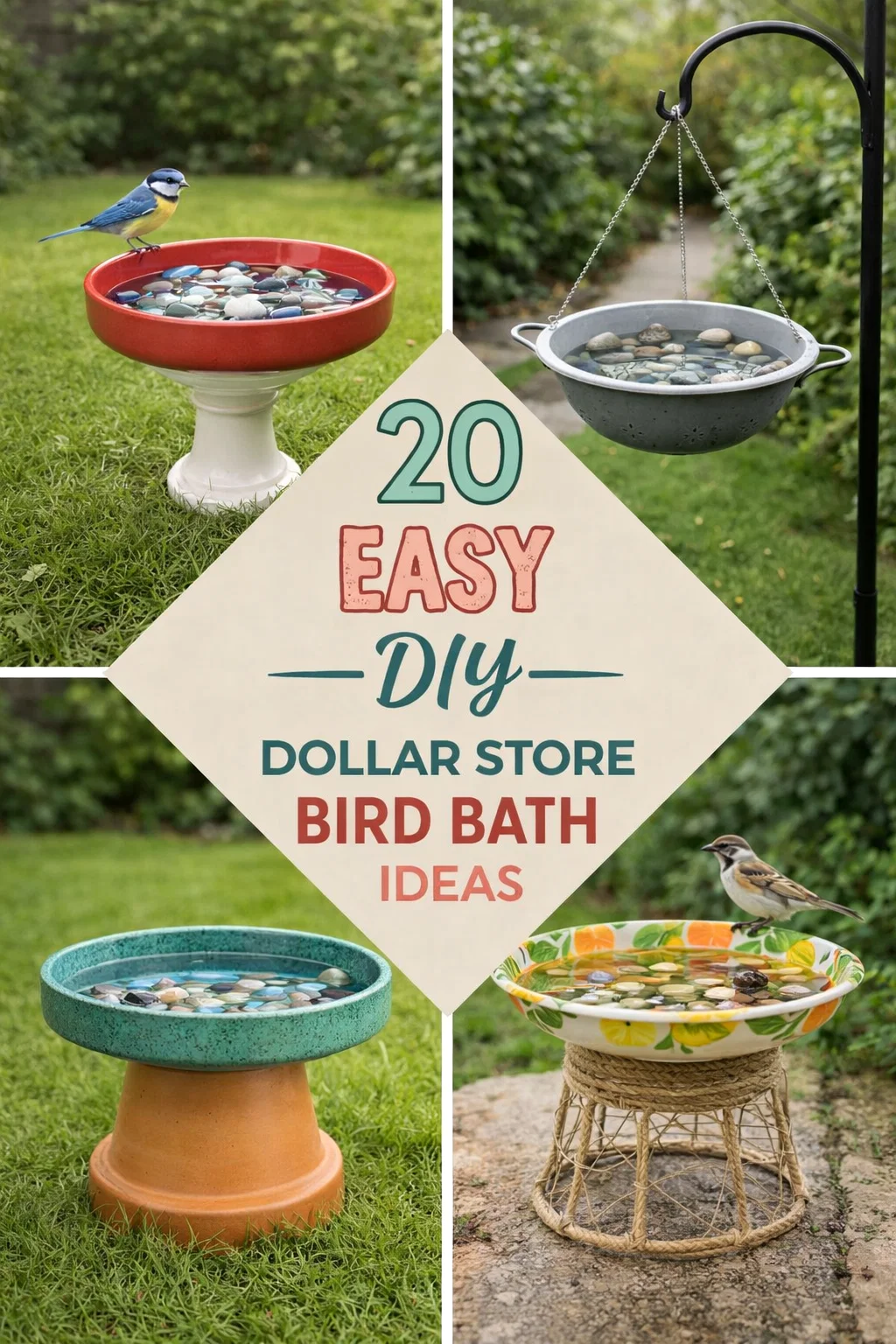 20 Easy DIY Dollar Store Bird Bath Ideas Backyard Garden Decor Projects