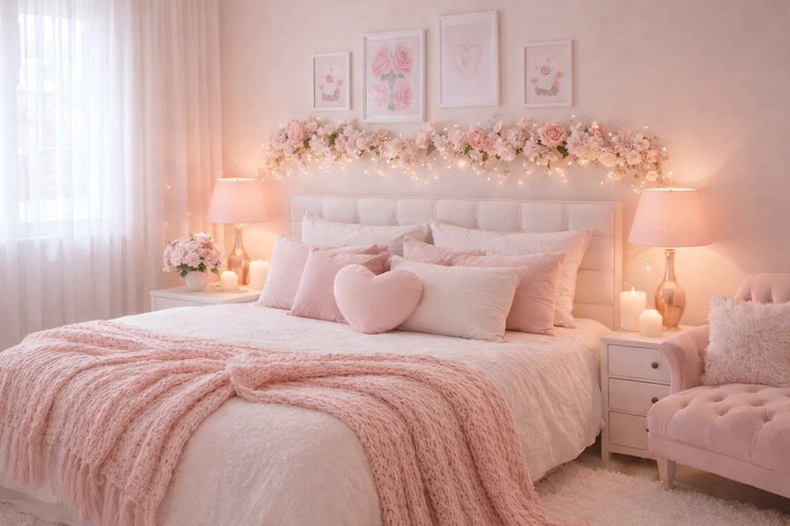 Install your main overhead light for general illumination. Then, place a lamp on each bedside table for reading and ambient glow. Consider a third light source, such as a floor lamp in a corner or a plug-in wall sconce above the bed. Use warm-white bulbs (2700K-3000K) to enhance the cozy, romantic pink bedroom decor atmosphere. Dimmer switches are a worthwhile investment for ultimate control.