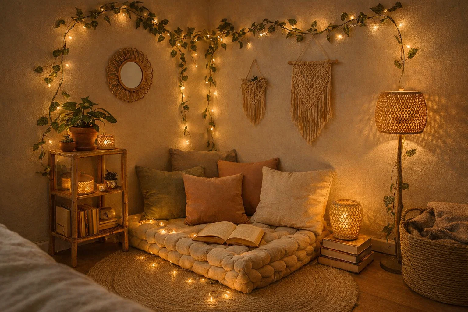 - Budget-Conscious Options: You don’t need to break the bank. Shop second-hand for solid wood furniture and reupholster or paint it. DIY your own macramé wall hanging or paint abstract art. Swap expensive textiles for affordable throws and pillow covers from discount stores. A simple string of fairy lights can transform a corner instantly.