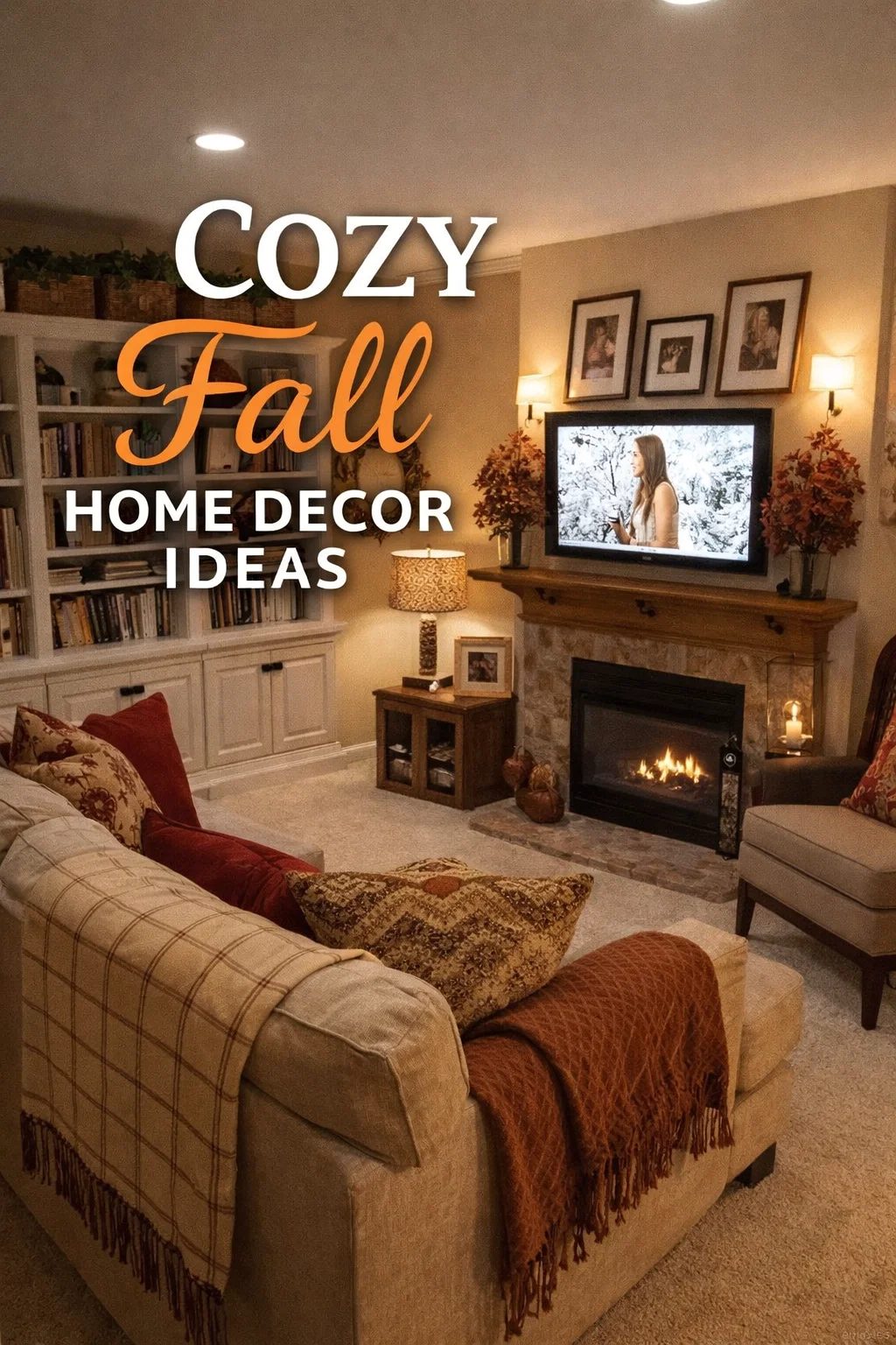 A truly cozy home changes with the seasons, recognizing and celebrating the unique beauty of each part of the year. This room has embraced the autumn season beautifully, and it has done so with purpose. The dried flower arrangements flanking the TV use the classic reddish and deep amber hues of fall. They provide natural texture and vertical interest without overwhelming the space.