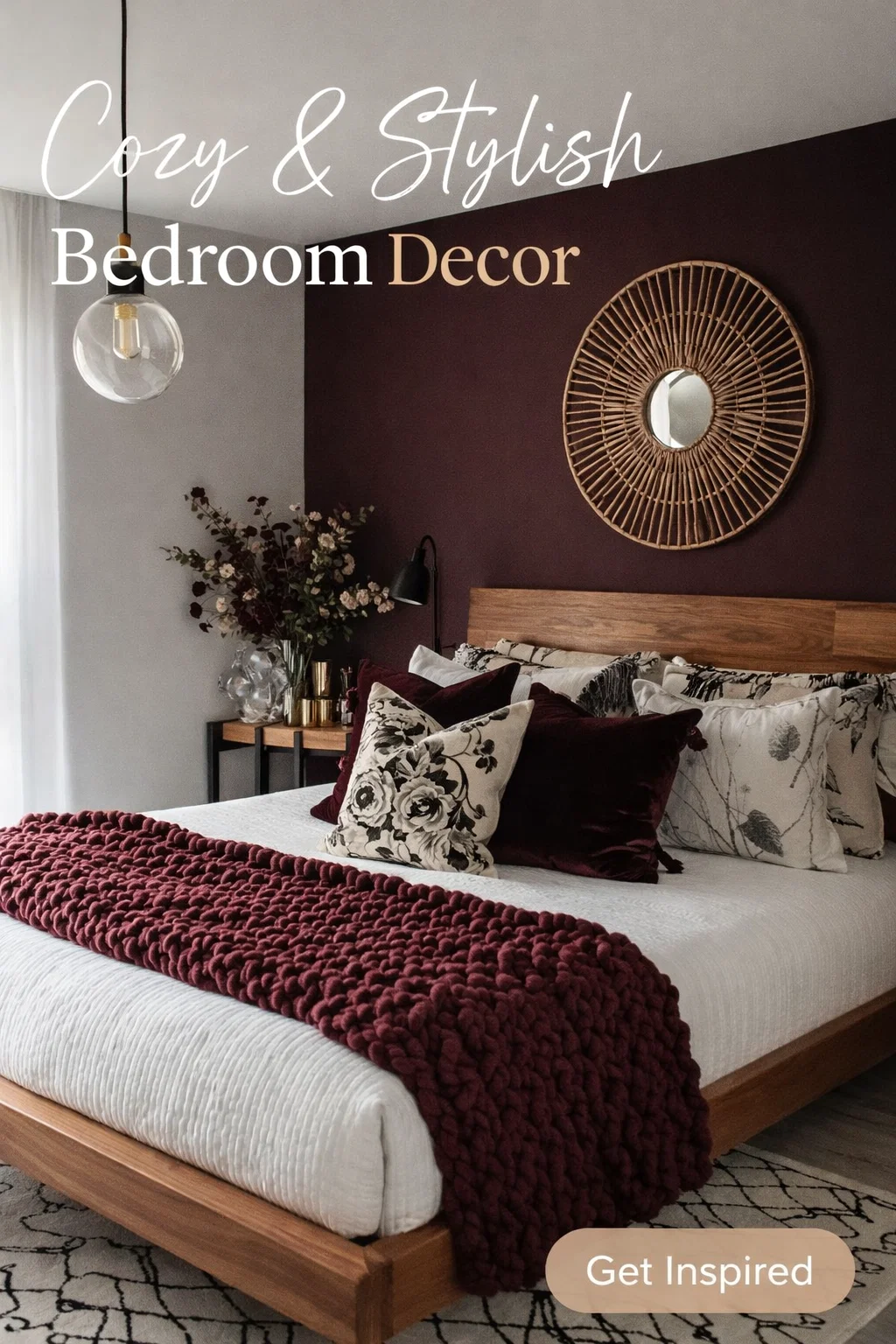 Creating a beautiful bedroom is about more than just following trends; it is about creating a space that reflects your personality and provides a place of rest. This modern boho aesthetic proves that you can be brave with color and still maintain a peaceful environment. By combining a bold burgundy wall with soft textiles, natural wood, and thoughtful lighting, you can create a room that feels both sophisticated and incredibly cozy.