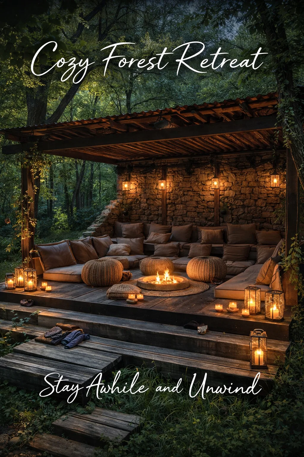 Creating a cozy forest lounge is a journey of balancing the ruggedness of the wild with the comforts of home. It requires a thoughtful selection of materials, a focus on low-impact seating, and a mastery of warm, ambient lighting. While the image shows a grand execution of this concept, the core principles can be applied to any backyard, regardless of size. By focusing on stone, wood, and fire, and by choosing textiles that invite you to sink in and stay a while, you can transform any patch of grass into a breathtaking sanctuary. The key is to work with nature rather than against it, allowing the environment to guide your choices. Start small with a few floor cushions and some lanterns, and over time, build your own slice of paradise where the trees are your walls and the sky is your ceiling. Save these ideas, start your planning, and prepare to enjoy a new way of living that celebrates the beauty of the great outdoors.
