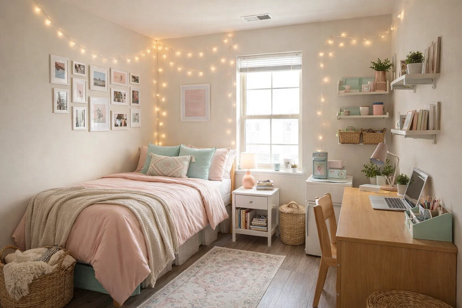 Creating your dream pastel dorm room is a process. Follow these steps to build your space layer by layer.