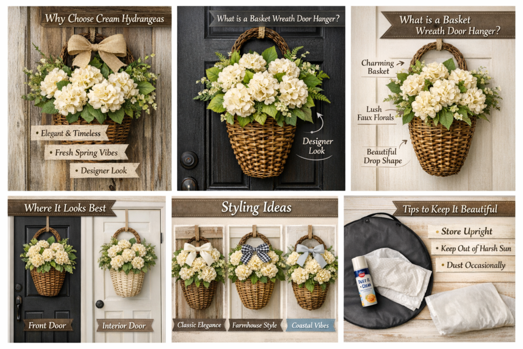 You’re in the right place. Let’s walk through why a Cream Hydrangea Spring Door Hanger Basket Wreath is one of the easiest, most elegant upgrades you can make—plus styling ideas, where it looks best, and a few simple tips to keep it looking gorgeous season after season.