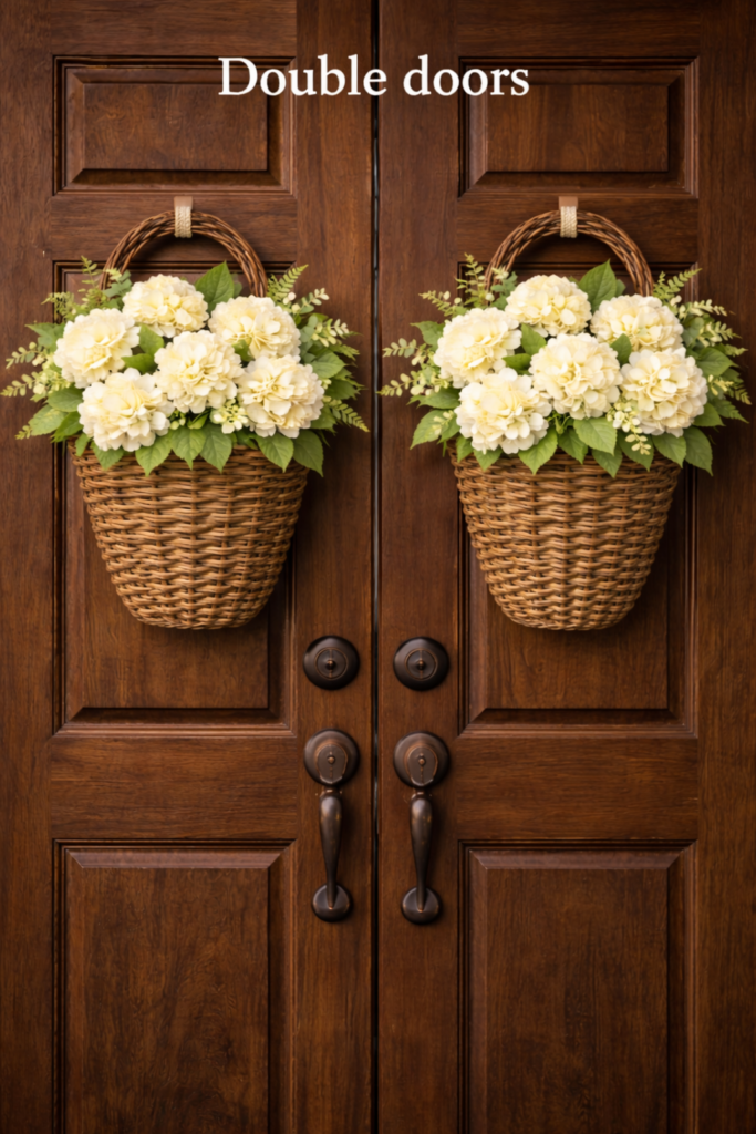 - Double doors: one statement basket on one door or matching baskets (symmetry looks amazing)