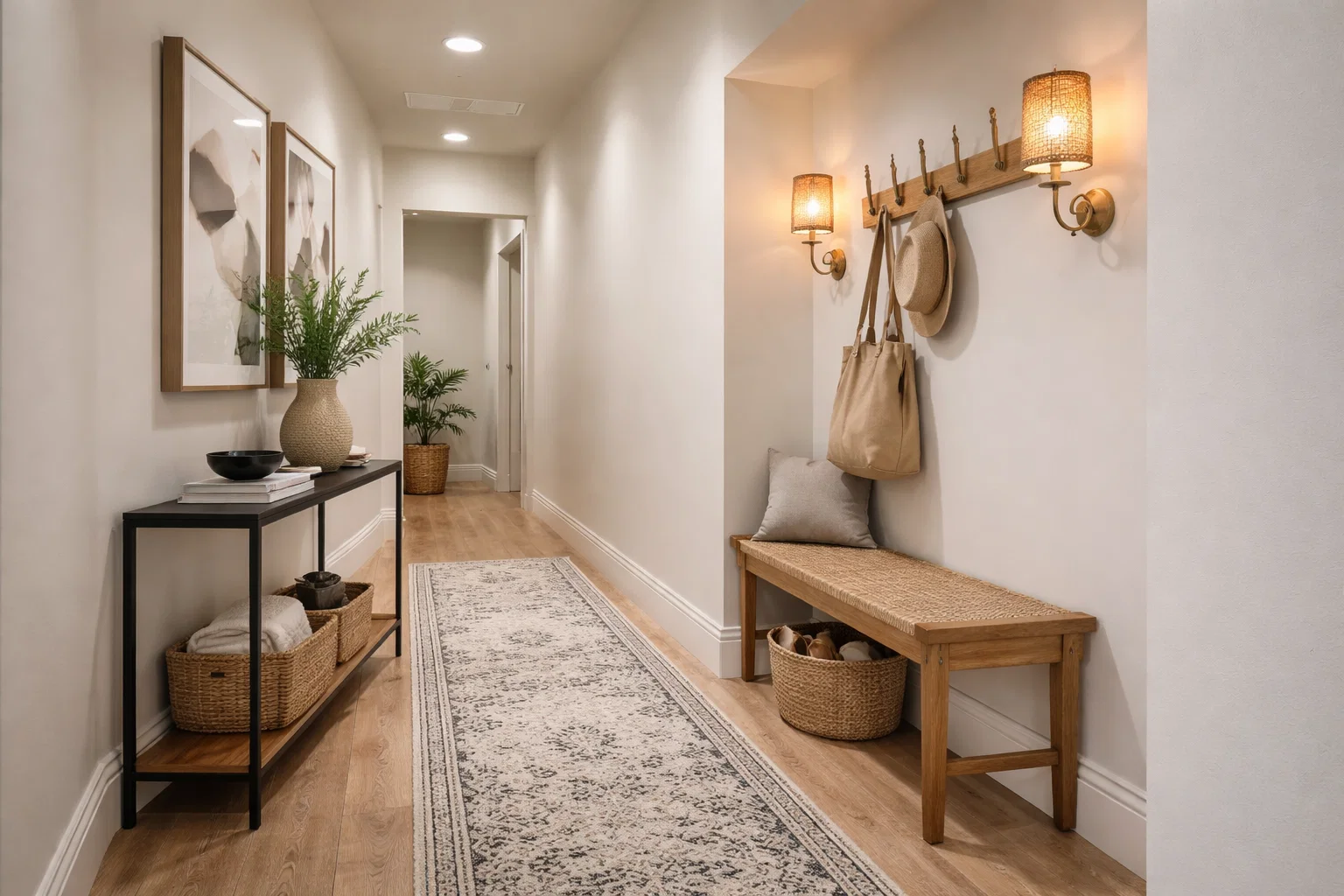 Lighting: This is non-negotiable. A dark hallway feels smaller. Layer your illumination with: