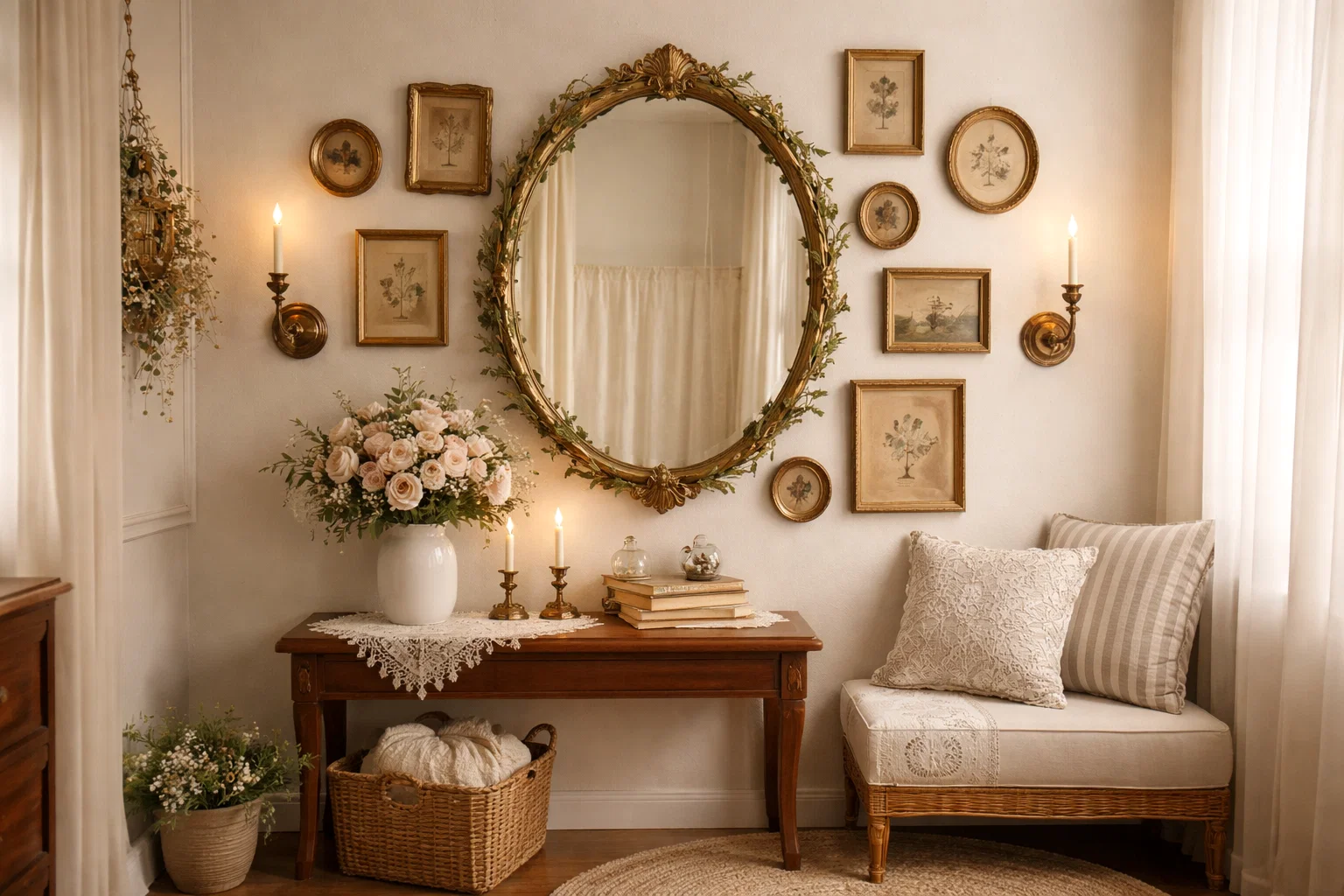 Textiles & Color Palette: Mirrors reflect everything, including colors and textures. A cohesive, intentional palette will be amplified. Use rich textiles like velvet cushions or a wool throw to add depth that the mirror will beautifully capture.