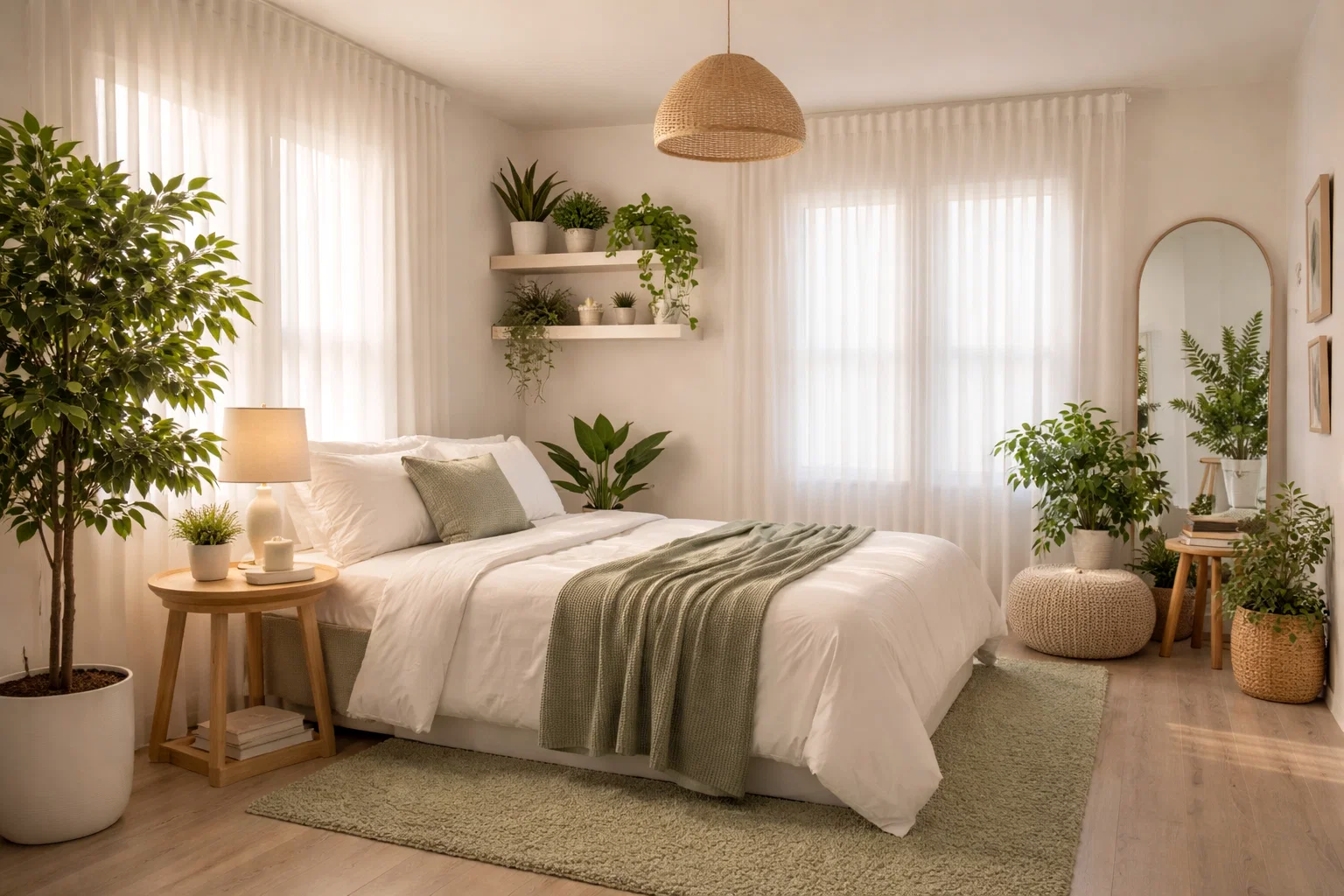 This is the most fun step. Hang artwork at eye level, typically with the center of the piece around 57-60 inches from the floor. Style your nightstands and shelves with a mix of heights and shapes: a lamp, a small stack of books, a vase, or a personal memento. Introduce greenery with low-maintenance houseplants like snake plants or pothos.