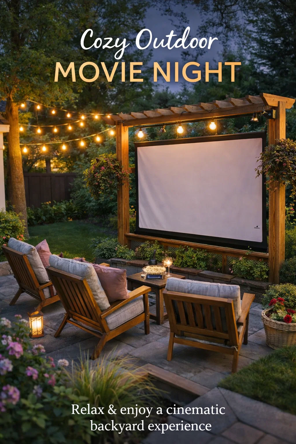 - Screen Size and Placement: Your screen is the focal point. It should be large enough to be easily seen by all viewers, but scaled appropriately for the size of your patio or yard. In the image, the screen is perfectly proportioned to the pergola and the seating arrangement. Position it to face away from any significant light sources (like streetlights or bright neighbor windows).