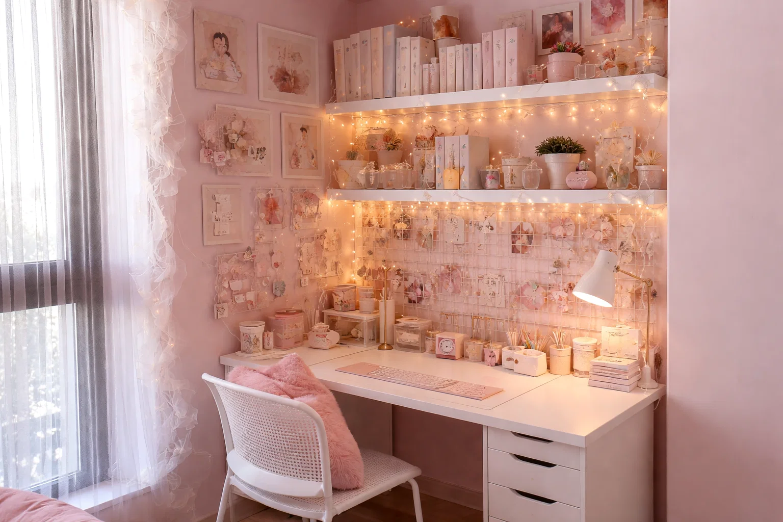 Textiles and Textures: Introduce softness with a small, plush rug under the chair to define the space and protect floors. A throw blanket draped over the chair or a felt desk pad can add color, texture, and a layer of comfort.