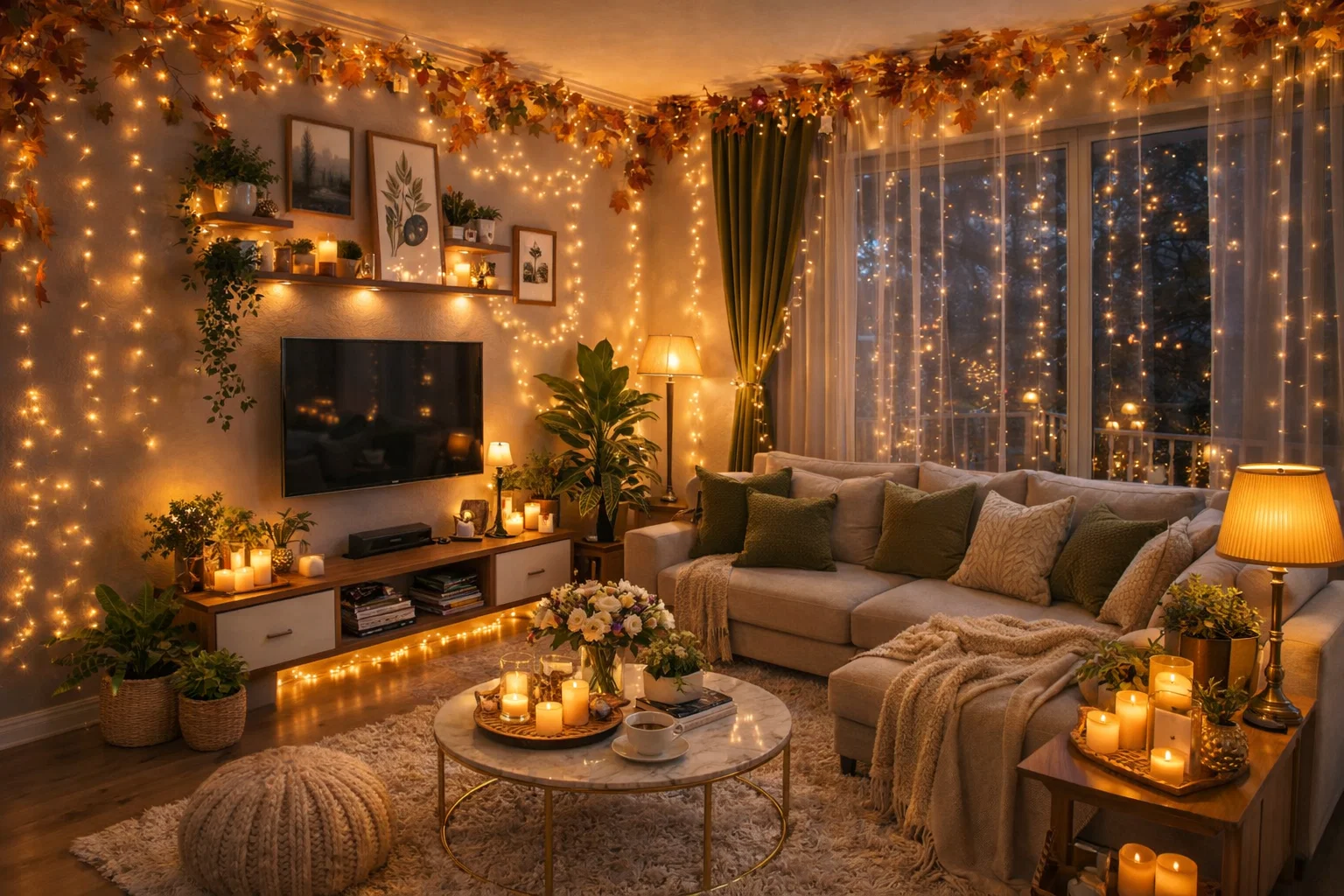 Essential Decor Items for Golden Hour Haven: Cozy Living Room with Stunning Fall Ceiling Designs to Inspire