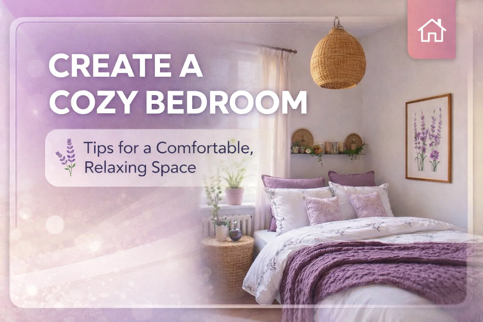 Lighting can make or break the mood of a room. During the day, maximize natural light by using sheer curtains. The light-filtering white curtains in the image allow the sun to glow through, illuminating the lavender tones without creating harsh glares. This “golden hour” vibe is exactly what you want for a relaxing afternoon nap or a morning meditation session.
