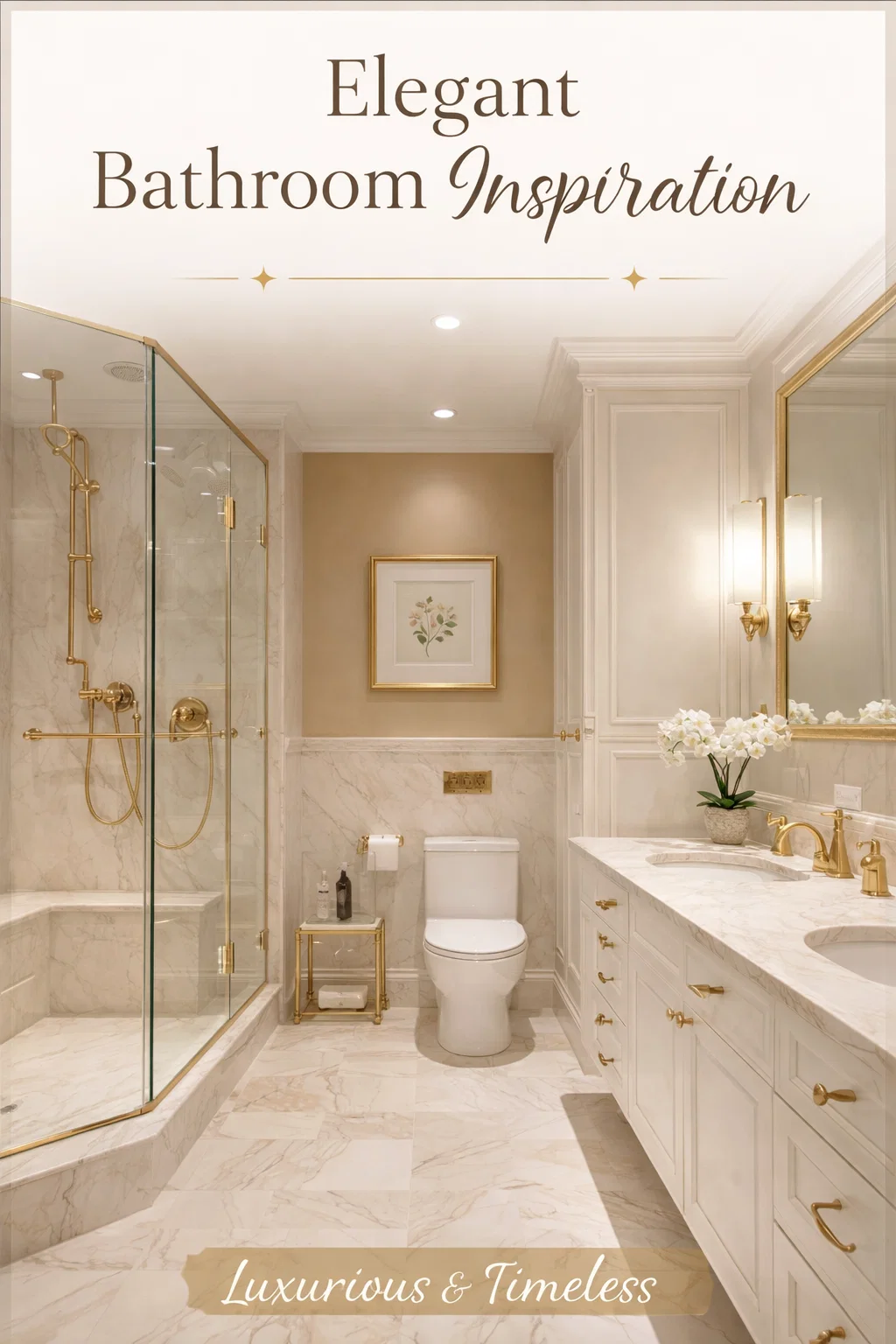 Luxury White Marble Bathroom Ideas with Gold Hardware and Double Vanity