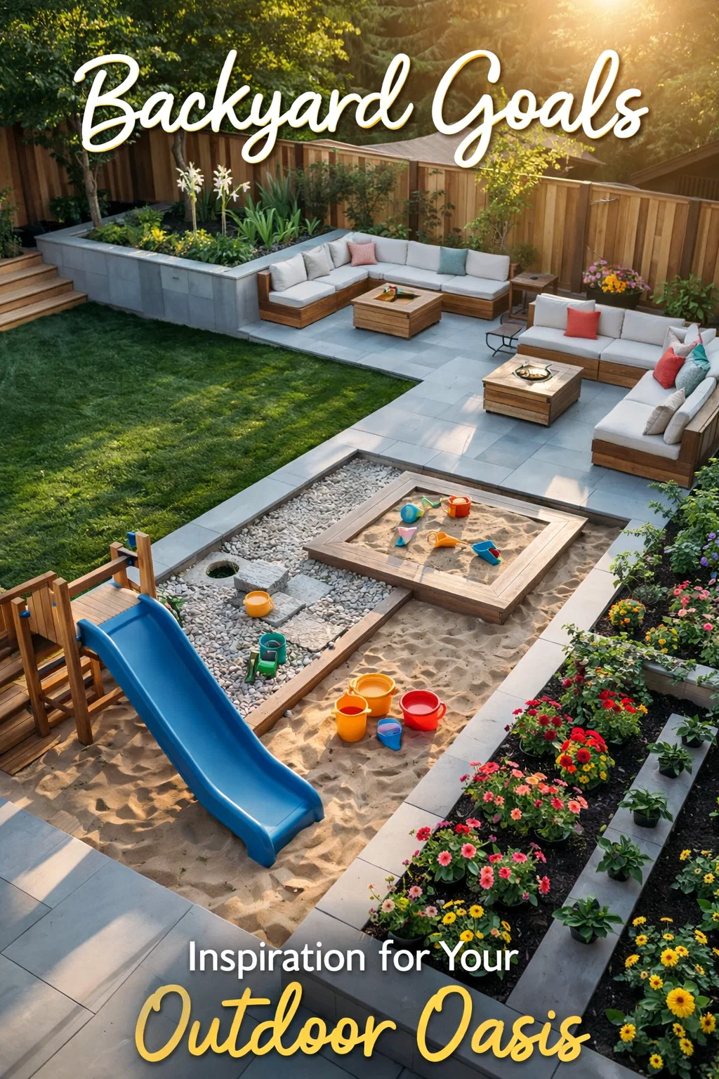 Creating a backyard that serves the needs of every family member is a common design challenge. You want a space where children can run wild and embrace their imagination, but you also crave a sophisticated sanctuary where you can host dinner parties or unwind with a book after a long day. The secret lies in a concept called multi-functional zoning. By thoughtfully dividing your outdoor area into distinct rooms, you can create a seamless flow that prioritizes both aesthetics and play. The image we are looking at today is a masterclass in this approach, demonstrating how a sandbox and swing set can coexist beautifully with modern stone patios and plush outdoor sectionals.