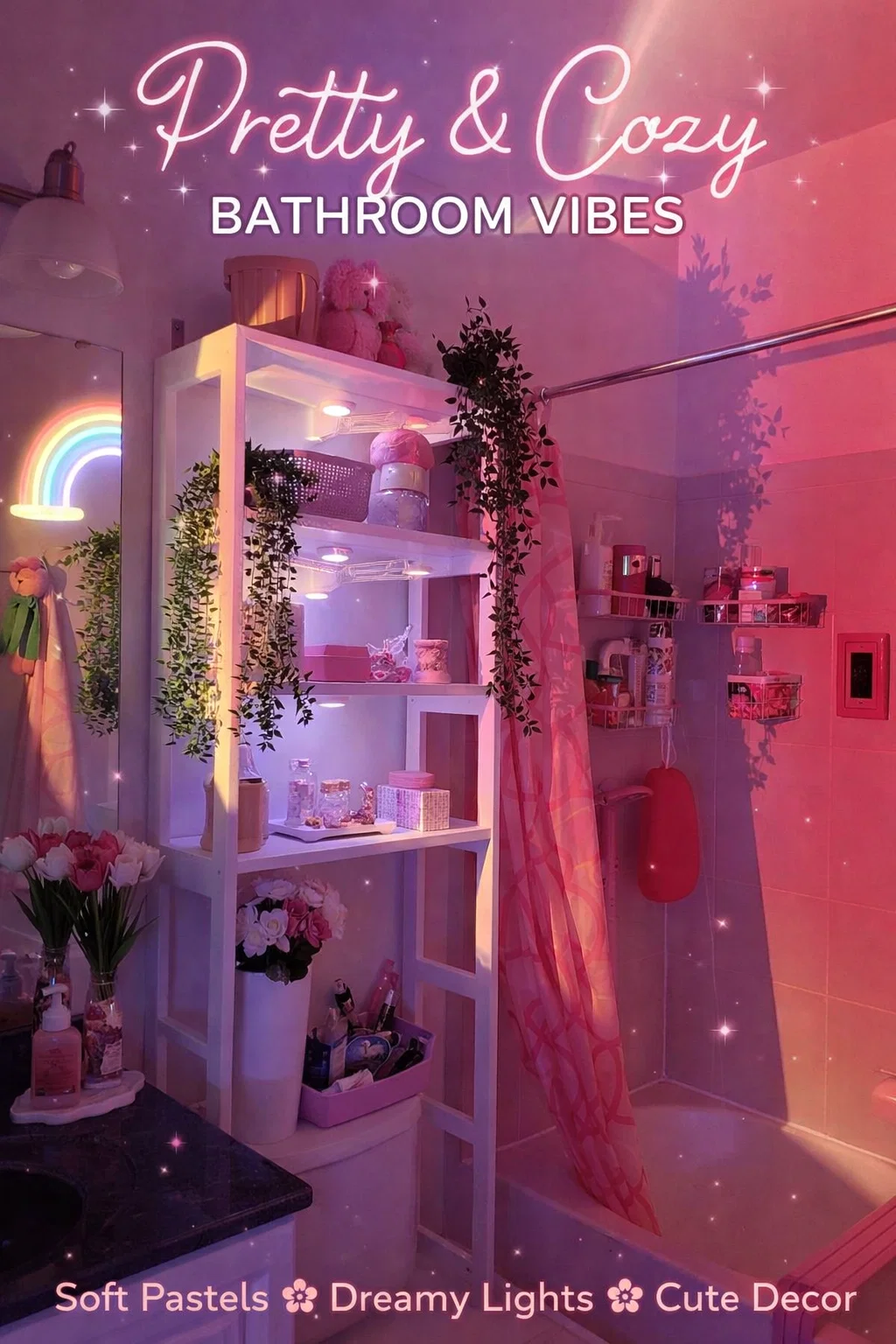 Stepping into your bathroom should feel like entering a personal sanctuary, especially when you are balancing the hectic schedule of college life. While standard dorm bathrooms are often known for their sterile tiles and harsh fluorescent lighting, the image above proves that with a little creativity, you can transform even the smallest functional space into an aesthetic dreamland. By layering soft textures, vibrant colors, and clever lighting solutions, you can create a room that not only looks incredible on social media but also serves as a peaceful retreat for your self care rituals.