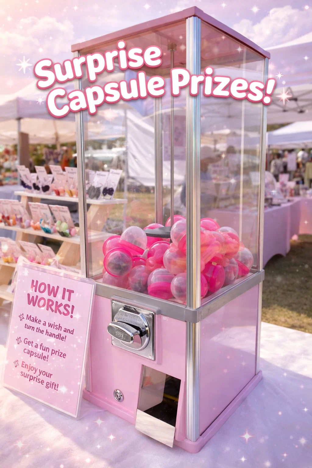 Ensure that the pink aesthetic of your machine matches your WordPress blog and Pinterest presence. When a customer sees your booth in person, it should feel like a physical extension of your online world. Using consistent colors, fonts on your signage, and even the style of the capsules helps in building a recognizable brand identity that sticks in the customer’s mind long after the fair is over.