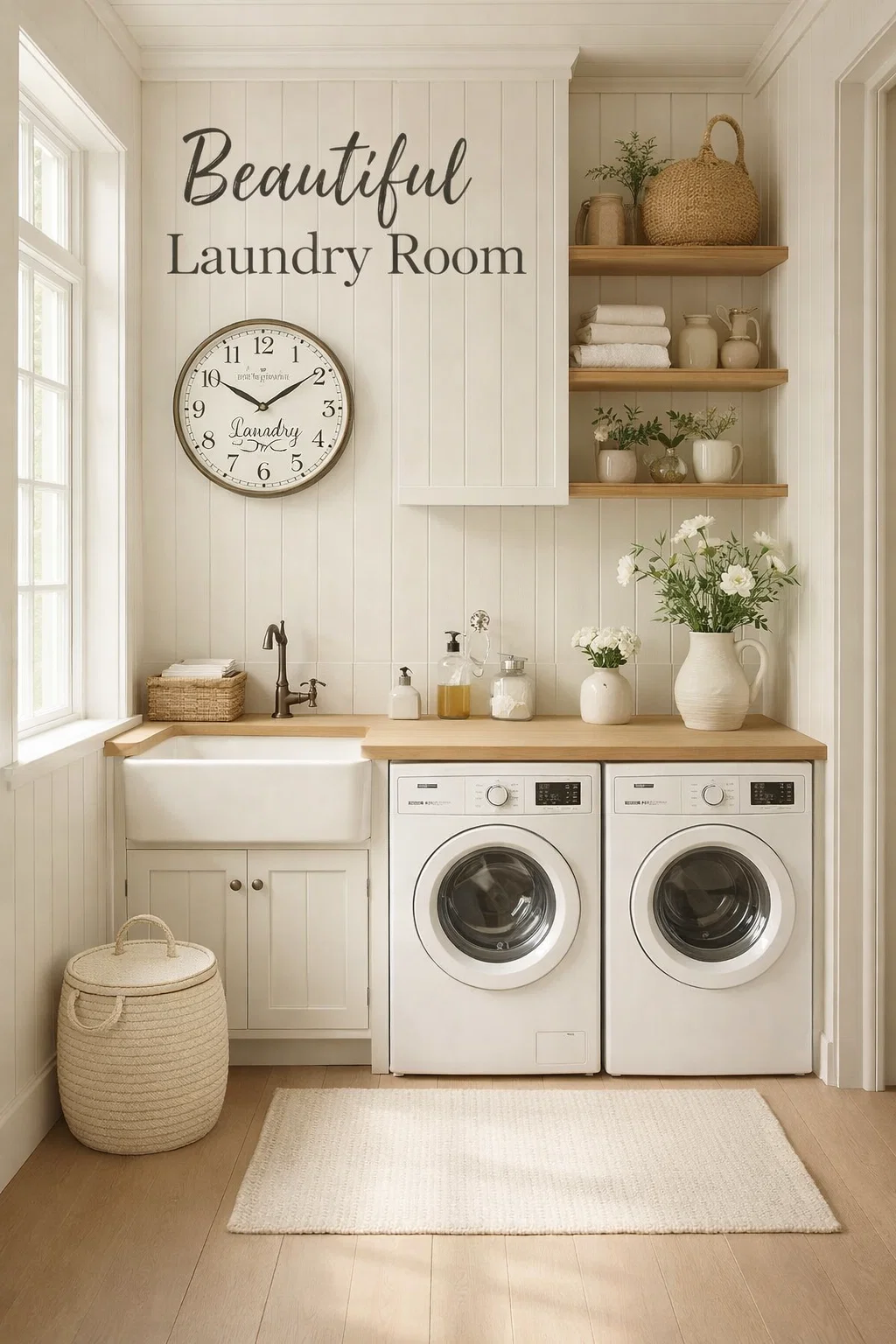 The foundation of any great laundry room starts with the color story. To achieve this airy look, opt for off-white or cream tones rather than a stark, cold hospital white. This adds a layer of warmth that reflects natural light beautifully. Vertical shiplap or beadboard paneling on the walls adds a subtle texture that prevents the monochrome look from feeling flat. When you pair these light walls with natural oak or butcher block countertops, you create an organic contrast that is instantly soothing to the eye.