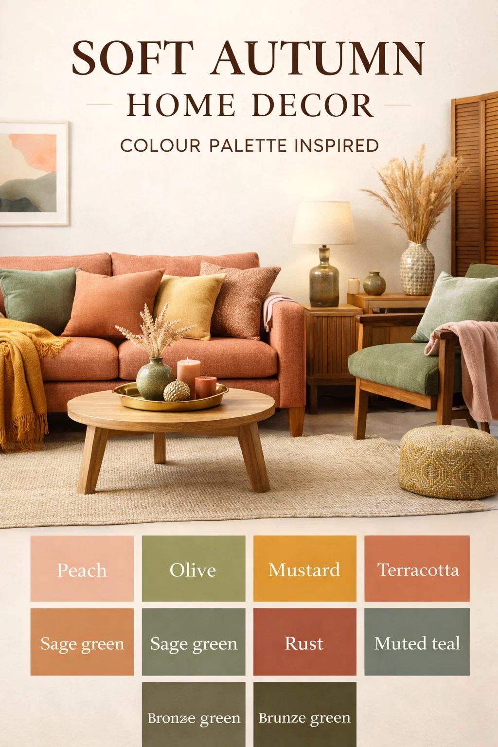 The principles of this palette extend far beyond your closet. If you find peace in these colors, why not bring them into your living space? A Soft Autumn interior is incredibly cozy and inviting. Think of a room with oatmeal-colored linen sofas, olive green throw pillows, and warm wood accents. Using these tones in your home creates a sanctuary that feels timeless and organic, much like a peaceful afternoon in the countryside.