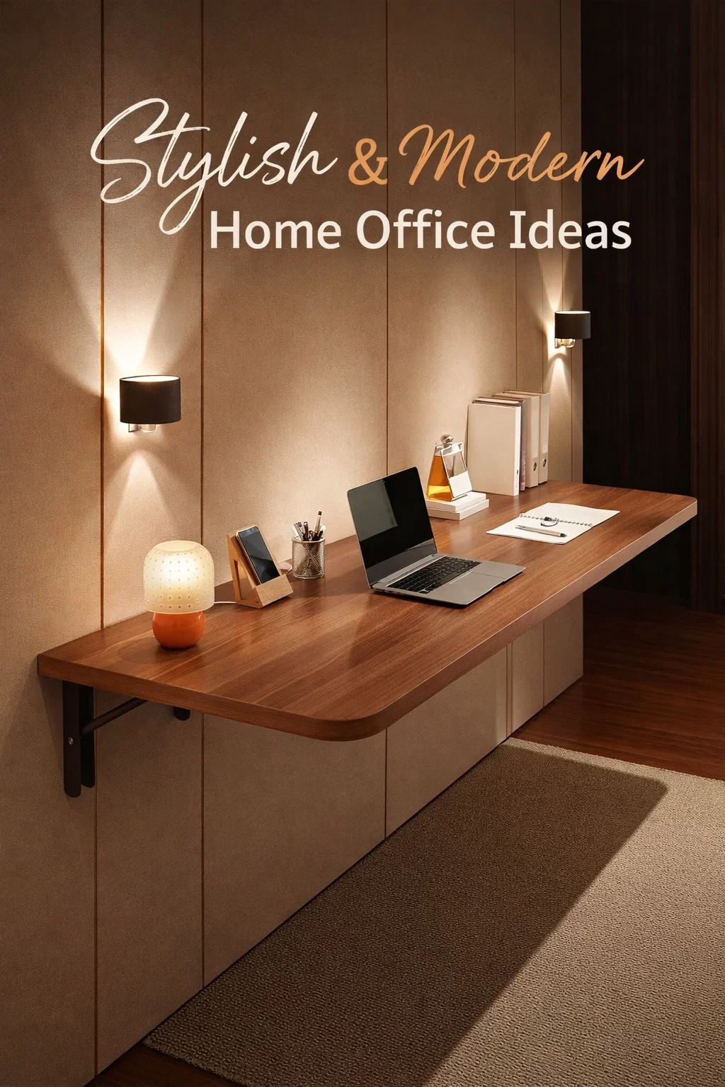 The concept of floating furniture is a cornerstone of modern interior design, especially for those who value an open and airy feel. When a desk is mounted directly to the wall without traditional legs, it leaves the floor space underneath completely clear. This small change has a massive psychological impact on how we perceive a room. It makes the area feel larger and less cramped. In the featured image, the long, warm wood grain of the desktop stretches across the wall, providing ample surface area for a laptop, notebooks, and even decorative touches like a small lamp or fresh flowers, all while maintaining a light footprint.