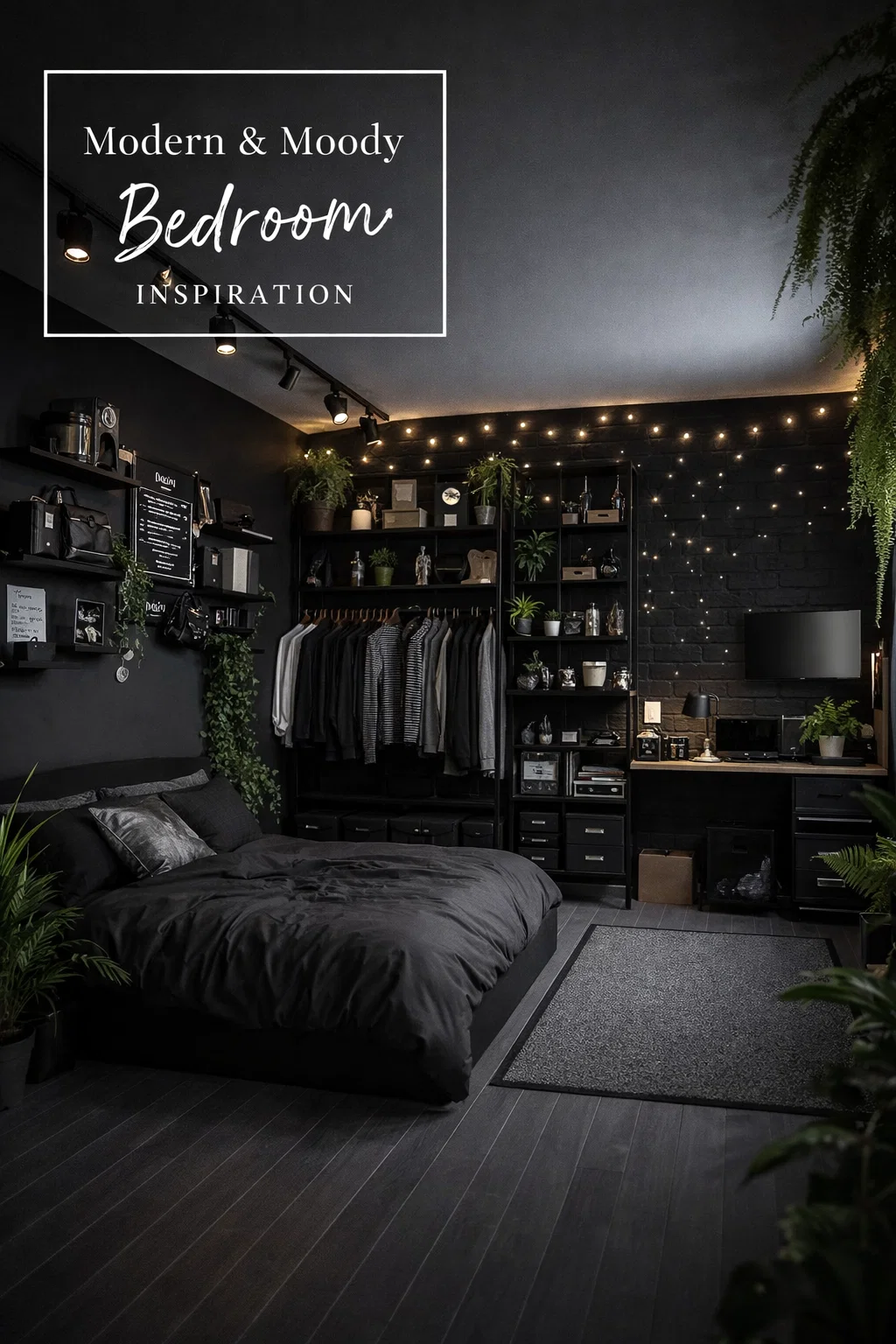 Modern Black Dorm Room Decor Dark Aesthetic Bedroom Inspiration Ideas