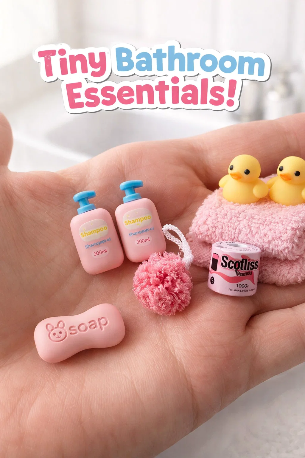 Kawaii Pink Miniature Bathroom Accessories Tiny Dollhouse Toiletries Miniature Soap Shampoo Essentials