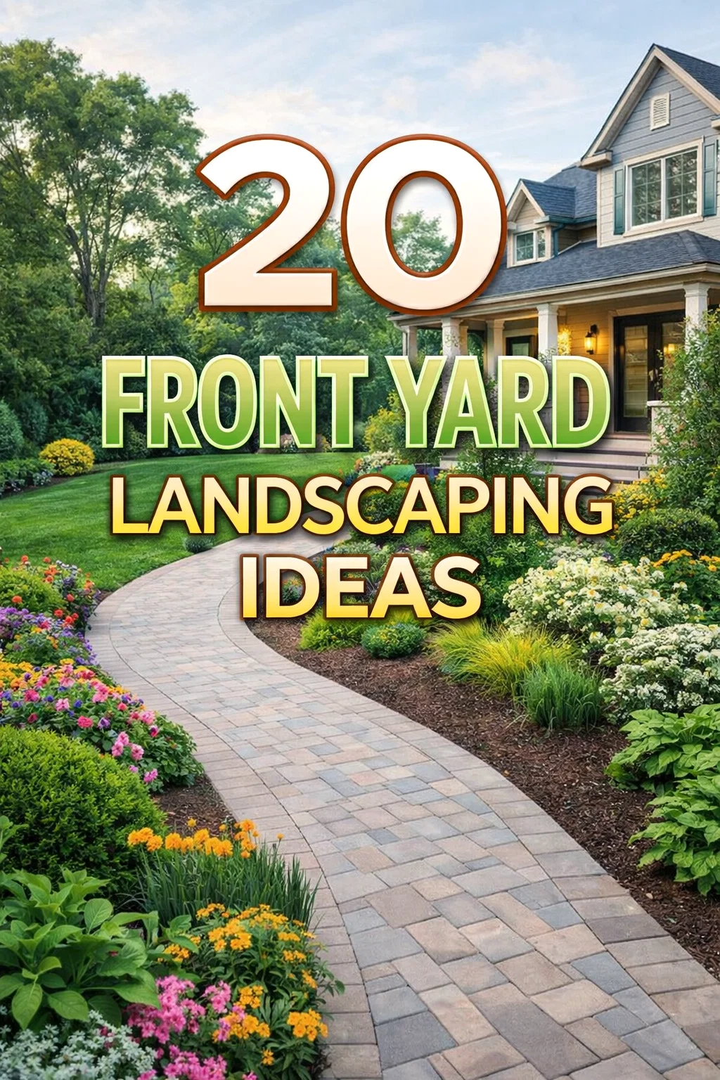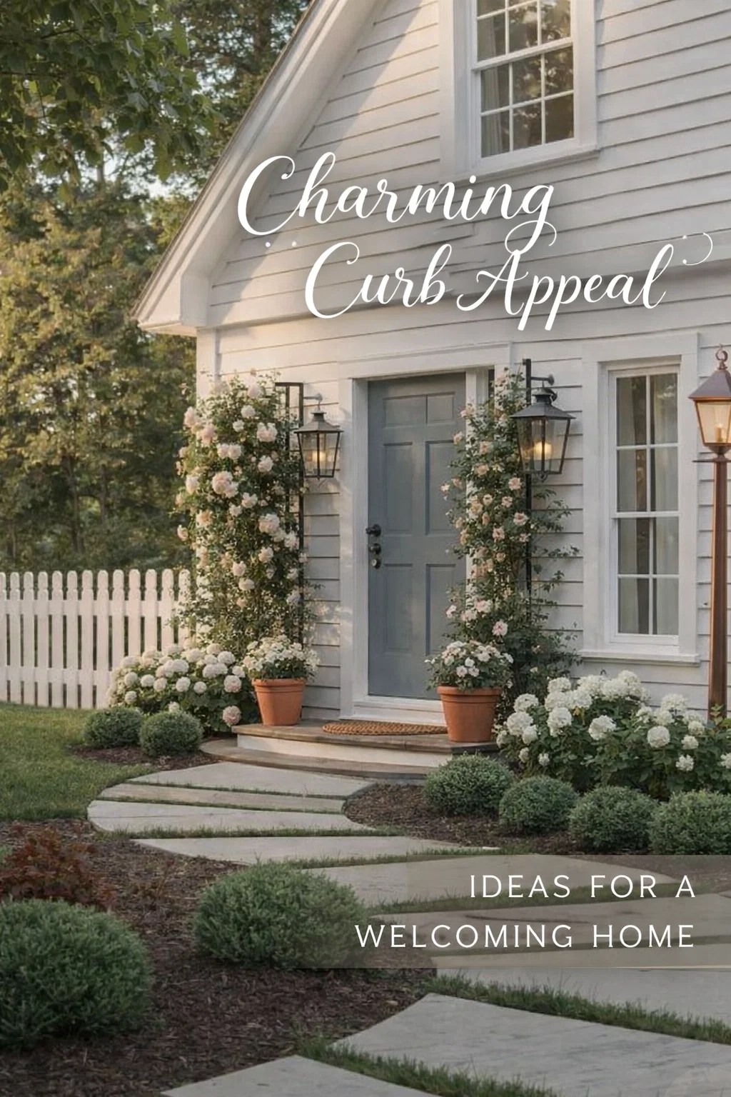 Cottage Garden Front Entry Landscaping with Climbing Roses, Hydrangeas and Stone Walkway