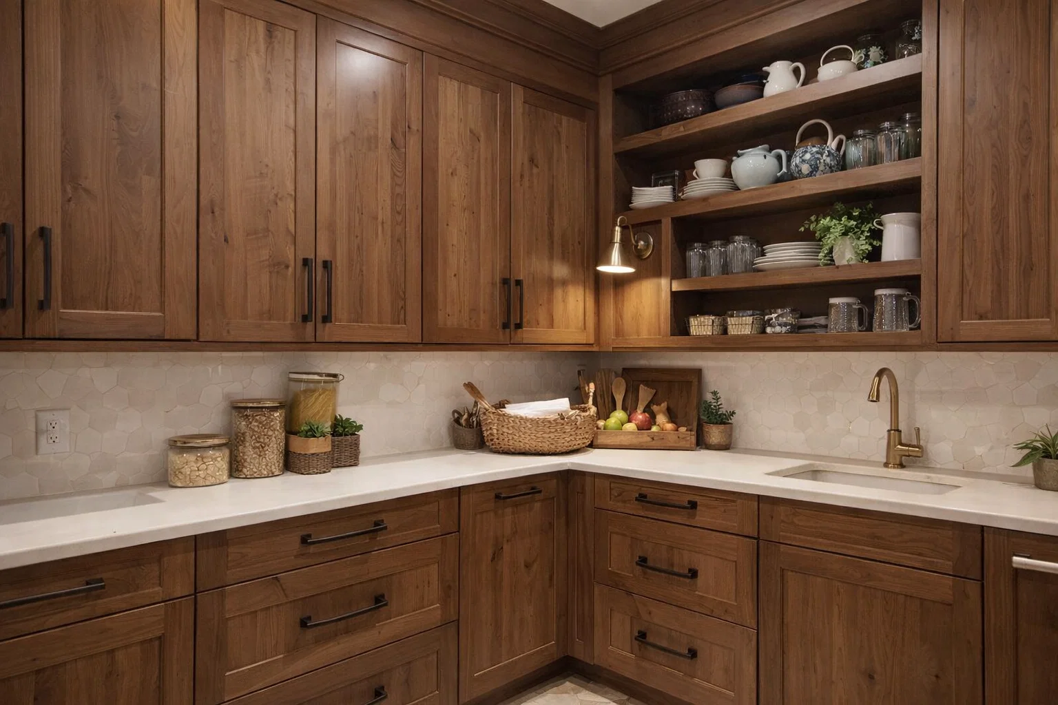 - Open Shelving: Remove a few upper cabinet doors to create open shelving. This breaks up the monotony of cabinetry and allows you to display beautiful dishware.
