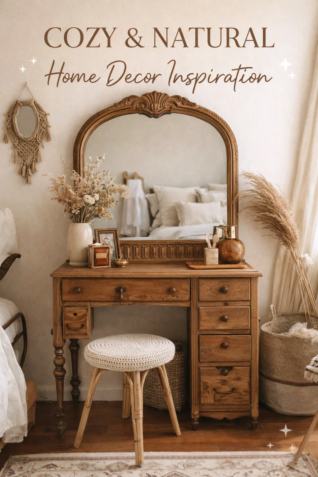 The timeless combination of a vintage wood vanity, natural textures, and thoughtful styling creates a bedroom feature that is as functional as it is beautiful. By embracing the imperfections of aged timber and pairing it with soft, bohemian accents, you can curate a space that feels deeply personal and incredibly cozy. This look proves that you do not need the latest trends to create a stunning home. Sometimes, the most inspiring spaces are those that celebrate the warmth of the past and the simple beauty of natural materials. Whether you are starting a full room renovation or just looking to refresh a corner, a brown vanity is a classic choice that will never go out of style.